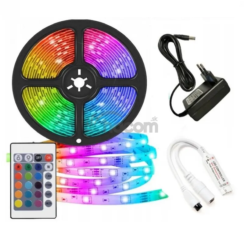 - Sada: 2.5m RGB LED pásik do interieru 60 SMD5050/m, 14.4W/m, IP20 + zdroj + RGB ovládač