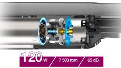 Osadený BLDC motor dosahuje výkon až 120W, má o tretinu dlhšiu životnosť, vyššiu spoľahlivosť, tichší chod a hlavne úspornejšiu prevádzku oproti klasickým motorom.