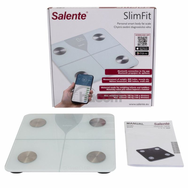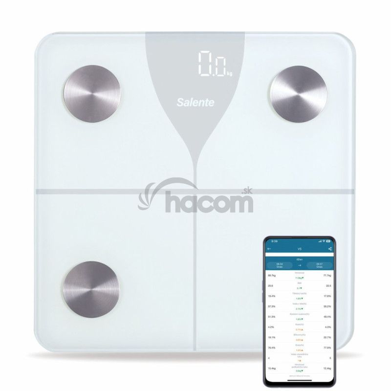 - Salente SlimFit, osobná diagnostická fitness váha, Bluetooth, biela SLIMFIT-WH