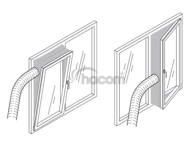 • Odvod teplého vzduchu z miestnosti cez dodávanú flexibilnú hadicu a tesnenie do okna