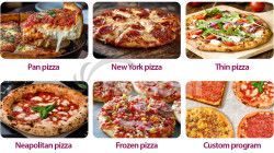• New York pizza: Väčšie, mäkkšie plátky s pružným cestom, ktoré sa dá ľahko zložiť napoly. Program kombinuje stredne vysokú teplotu a dlhšie pečenie, vďaka čomu vznikne zlatistý, ale stále vláčný základ – ideálny pre surové a výrazné americké pizze.