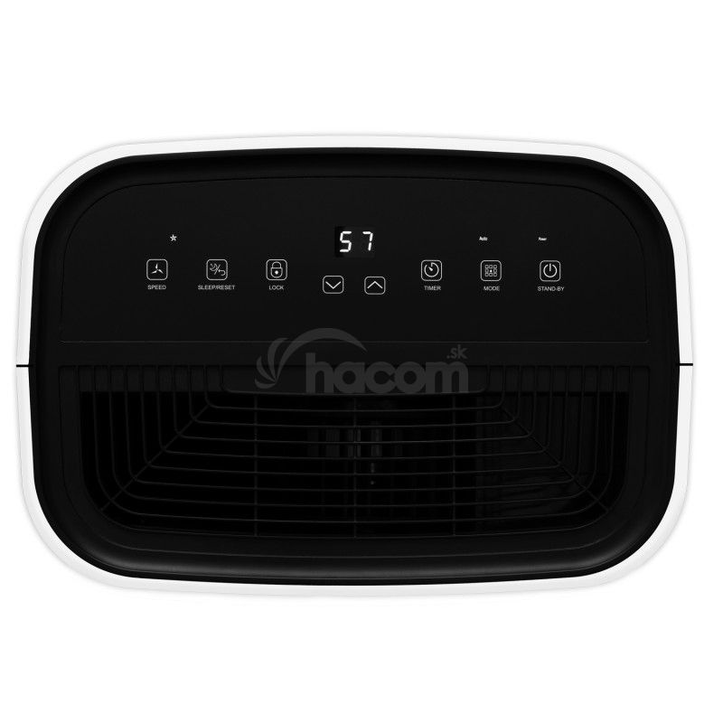 Displej odvlhčovača prehľadne zobrazuje aktuálnu a cieľovú vlhkosť, rýchlosť ventilátora a stav časovača, ktorý je možné nastaviť až na 24 hodín . V prípade výpadku prúdu funkcia AutoRestart obnoví prevádzku zariadenia presne tam, kde bola prerušená.