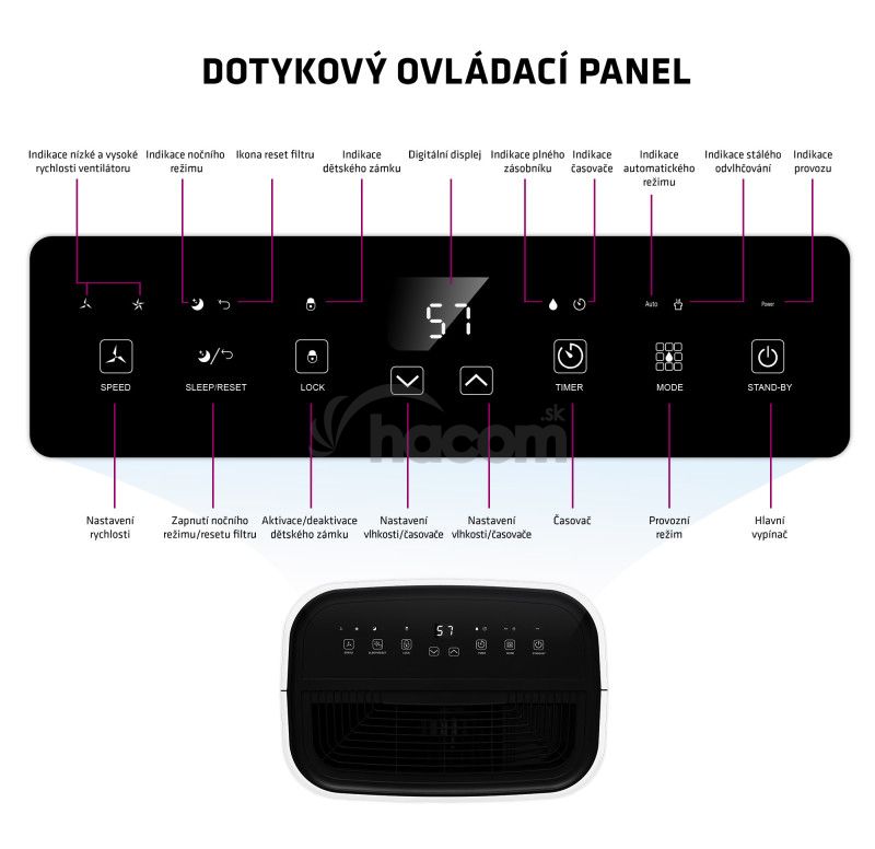11) dotykový ovládací senzor pre zapnutie/vypnutie odvlhčovača
