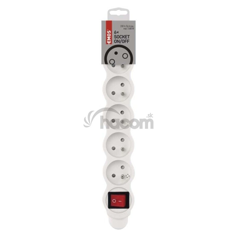 Samostatná 6 zásuvka s vypínačom, biela P1600N