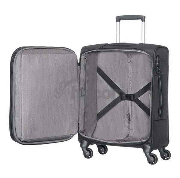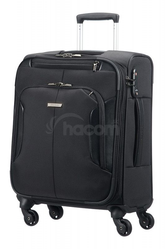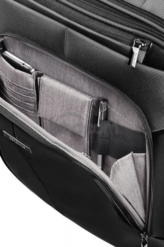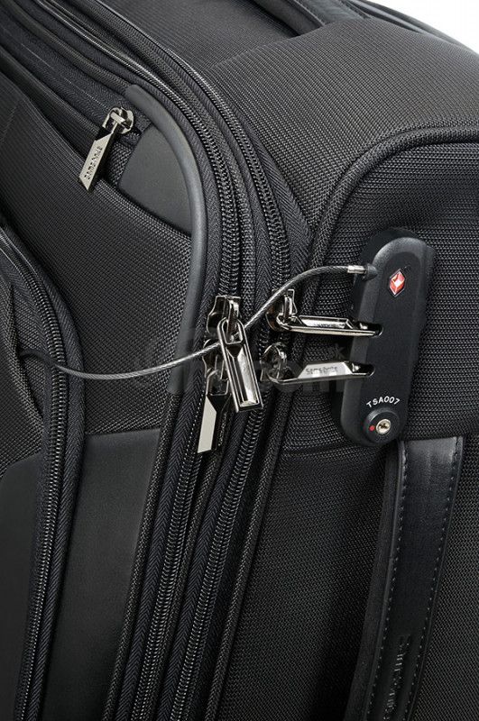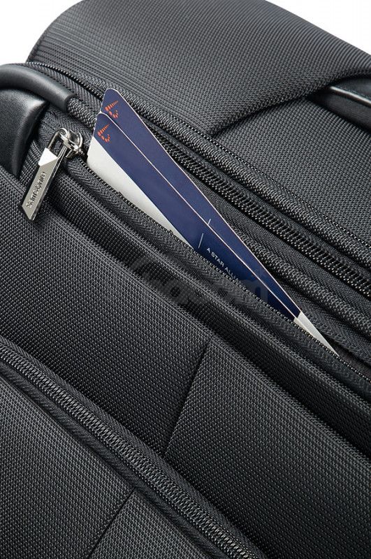Kufor na kolieskach Samsonite MOB. OFFICE SPINNER 55 z kolekcie XBR má nastaviteľnú výsuvnú rukoväť, štyri kolieska + dve ručné madlá pre ľahkú manipuláciu. Z prednej strany je veľké vrecko na zips s organizérom a niekoľkými kapsičkami. Za ňou je jedna menšia samostatné vrecko na zips. V ďalšej časti kufra sú priehradky na notebook + tablet, dokumenty a príslušenstvo. V základnej časti sú upínacie krížové pásy pre dobrú fixáciu odevov. Výhodou je lankové zabezpečenie zipsov do integrovaného zámku TSA, ktorý je výhodný najmä pri cestovaní do USA.Materiál: polyester / polyuretán