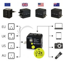 Univerzálny cestovný adaptér pre celý svet, ktorý je kompatibilný vo viac ako 150 krajinách.