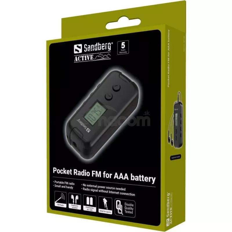 - Sandberg kapeskové FM rádio, na AAA batérie, display, čierna 421-00
