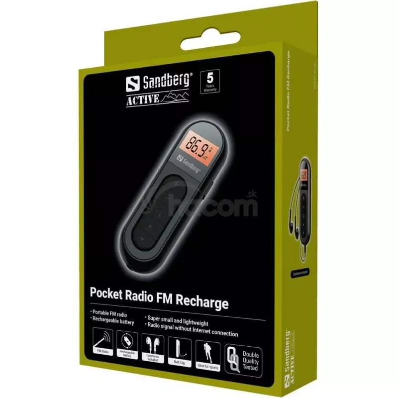 Sandberg vreckové FM rádio - kompaktné vreckové rádio s dobíjacou batériou, ideálne pre outdoorové aktivity.Sandberg vreckový FM radio Recharge je veľmi kompaktné a príjemné vreckové rádio, ktoré si môžete vziať na svoje outdoorové aktivity.
