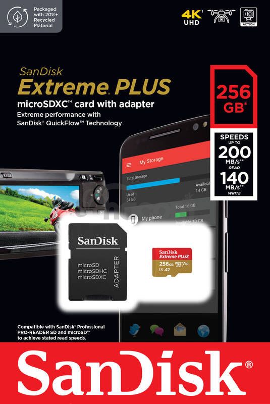 - SanDisk Extreme PLUS microSDXC 256GB 200MB/s +ada. SDSQXBD-256G-GN6MA
