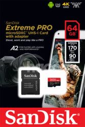 - SanDisk Extreme Pro microSDXC 64GB 170MB / s + ada. SDSQXCY-064G-GN6MA