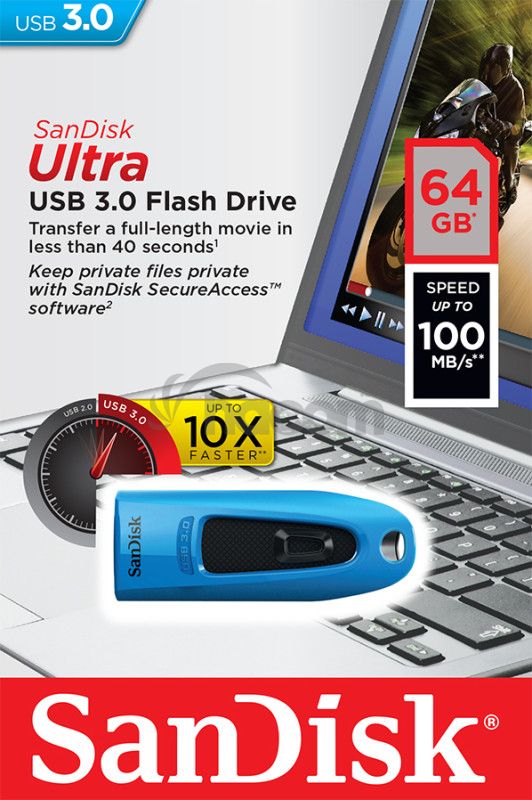 SanDisk Ultra USB 3.0 Flash Drive kombinuje rýchlejší prenos dát a veľkorysú kapacitu v kompaktnom, štýlovom balení.- prenos súborov až štyrikrát rýchlejšia než USB disky 2.0