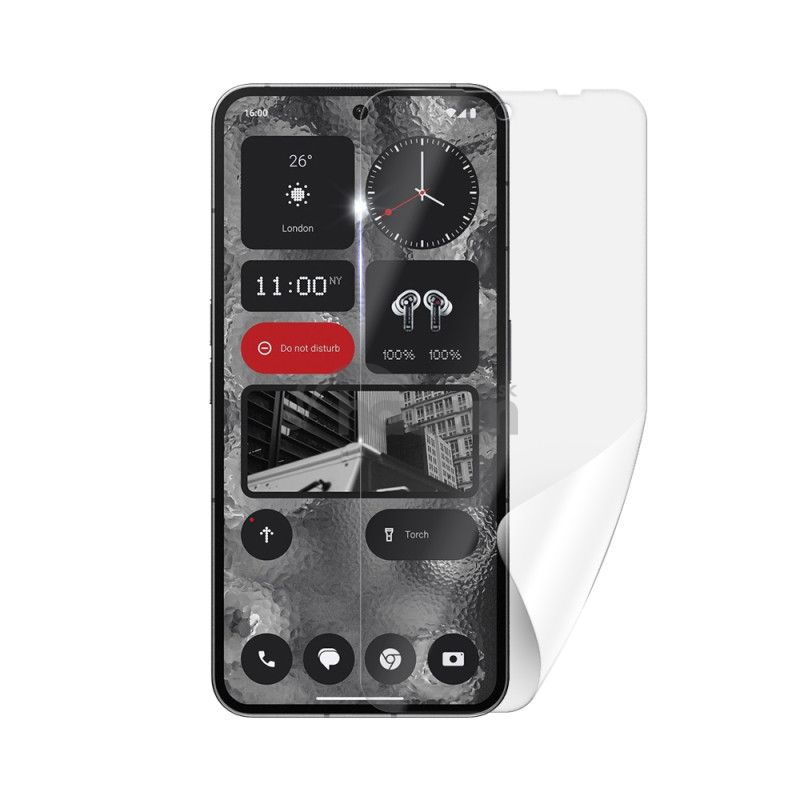 Kvalitná fólia predstavuje skvelý nástroj na dlhodobé zachovanie displeja Vášho telefónu NOTHING Phone 2 v perfektnej kondícii. Zaistí dokonalú ochranu pred odrením akéhokoľvek charakteru. Pritom je priehľadná a zakryje už existujúce drobné škrabance. Vďaka jej extrémnej odolnosti si tiež výrobca môže dovoliť poskytovať na nej doživotnú záruku. Súčasťou tohto produktu je ochrana displeja na báze priehľadnej polyuretánovej fólie.Parametre