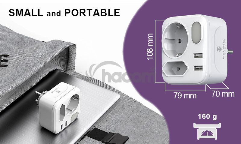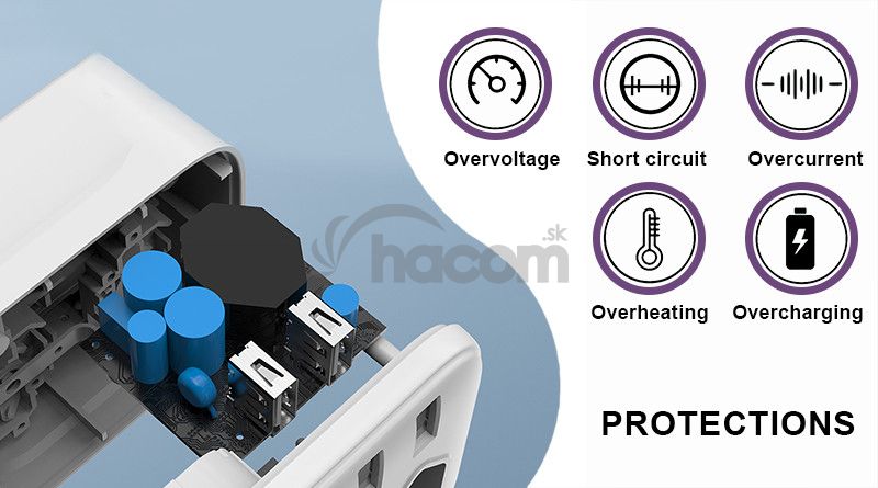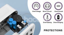 Dva AC výstupy vám umožňujú pripojiť viac zariadení naraz, Vďaka kompaktným rozmerom je ideálny nielen pre domácnosti a kancelárie, ale napríklad aj na cesty. Nebudete už nikdy čakať v rade na voľnú zásuvku.