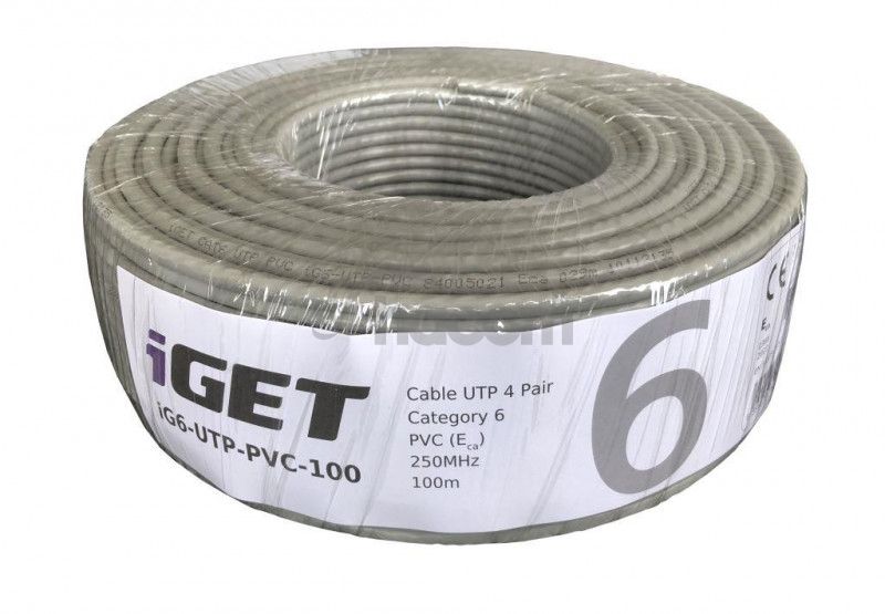 - Sieťový kábel iGET CAT6 UTP PVC Eca 100m/box, kábel drôt, s triedou reakcie na oheň Eca iG6-UTP-PVC-100