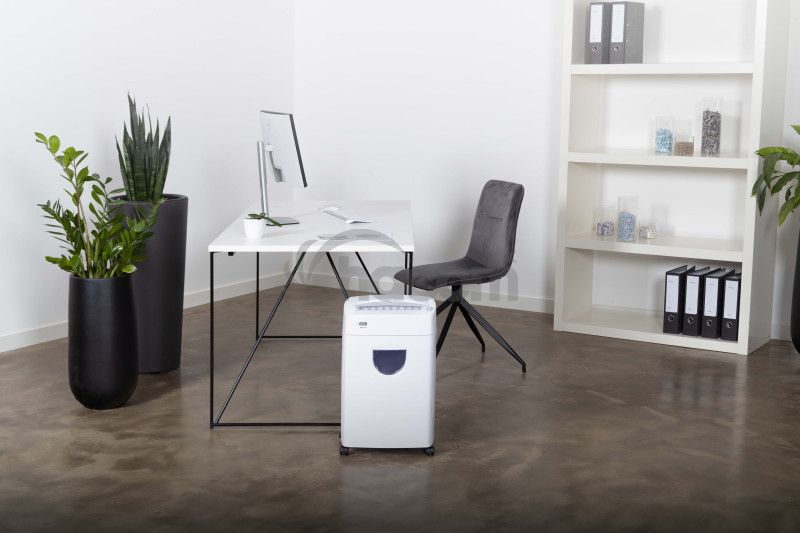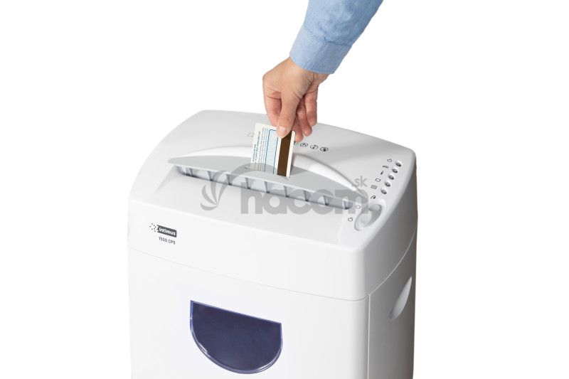 - Skartovačka s priečnym rezom 2 x 12 mm- Skartácia papiera, sponiek zo zošívačky a kreditných kariet