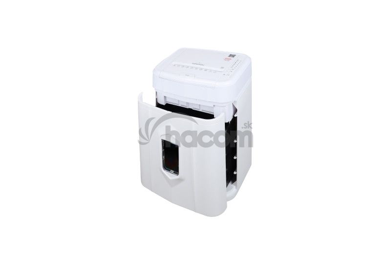 - Skartovačka s automatickým podávačom s priečnym rezom 4 x 12 mm- Skartácia papiera, svoriek, sponiek a kreditných kariet