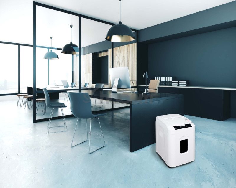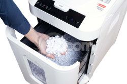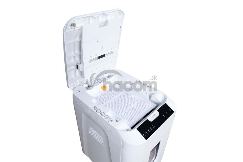 - Skartovačka s automatickým podávačom s priečnym rezom 4 x 12 mm- Skartácia papiera, svoriek, sponiek a kreditných kariet