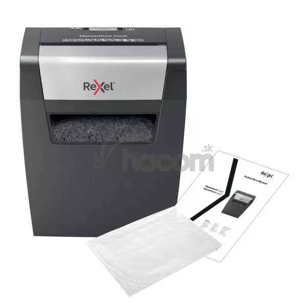Nezastaviteľná skartovačka! Rexel Momentum X406 skartuje až 6 listov naraz a vydrží v nepretržitom chode 3 minúty, vhodná na použitie doma. Krížový rez na úrovni zabezpečenia P4 reže papier na malé časti o veľkosti 4x28 mm. Odpadový kôš s kapacitou 15 l pojme 125 listov A4.Skartovací cyklus 3 minúty