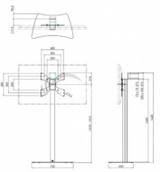 Držiak je osadený uchyteniami VESA až do 400 mm, ktoré umožňuje inštaláciu displejov s uhlopriečkou až 55" (150 cm). Pre uchytenie minipočítača alebo iného príslušenstva je stojan vybavený aj montážnym rozhraním VESA 75 a 100. Kabeláž je možné skryť do stĺpa na zadnej strane.