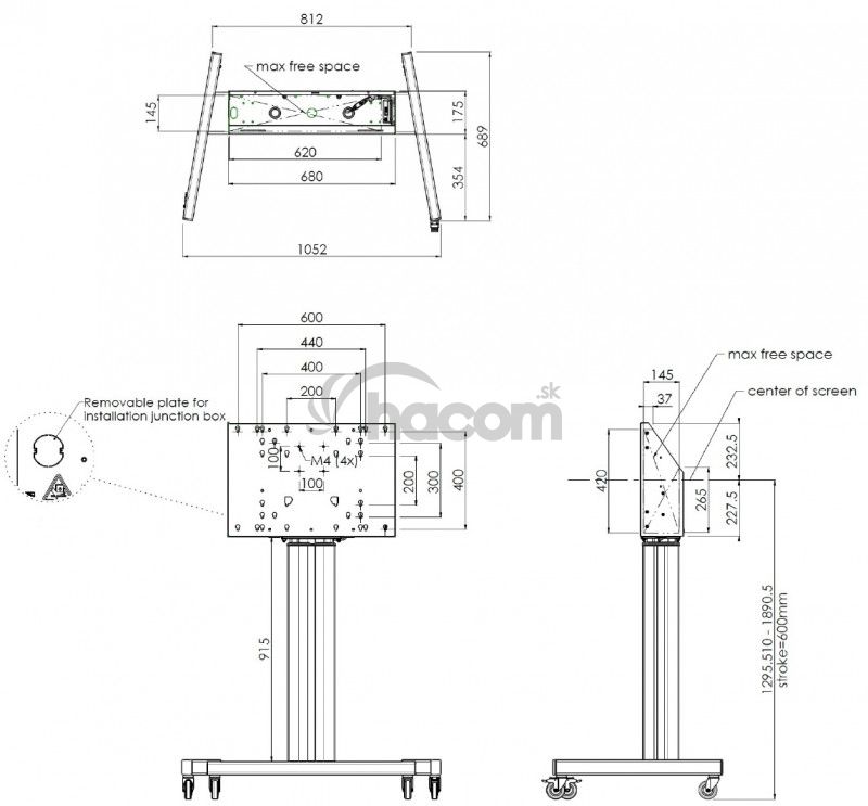 Pojazdný motorizovaný zdvih displejovStojan s elektrickým zdvihom využijete predovšetkým v oblasti vzdelávania, digitálnej tvorby alebo produktového a firemného marketingu. Model 062.7270 ponúka ľahkú zmenu výšky stojana o 500 mm, takže stred obrazovky sa môže pohybovať v rozpätí 1 030 – 1 530 mm.