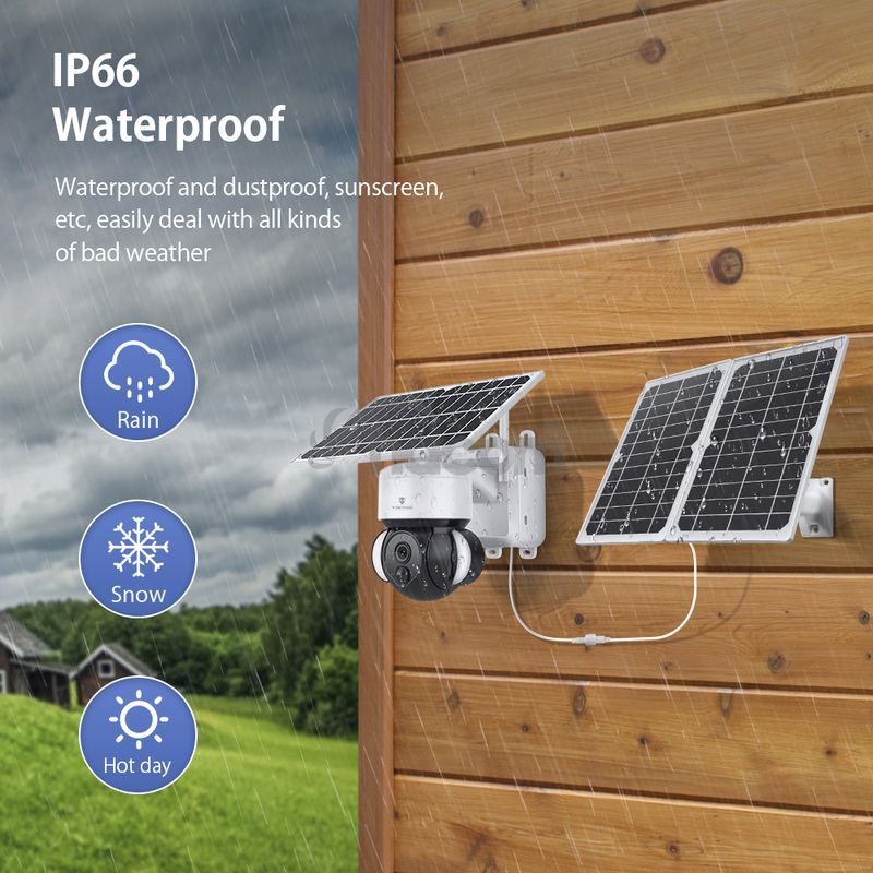 Tri solárne panely zaistia potrebné nabíjanie batérií (v závislosti na svetelných podmienkach), pre neobmedzenú prevádzku 4G kamery.