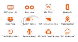2304 x 1296 rozlíšení · 4G pripojenie · 12x manuálny zoom · PIR detekcia - pohybový senzor · nočné videnie až 70m · podpora TF karty až 128GB · cloudové úložisko · aplikácia UBOX · kapacita batérie 7800 mAh · dvojsmerný prenos zvuku · PTZ otoč 90° · solárne napájanie · mobilné notifikácia · IR a biele LED osvetlenie · funguje iba so SIM kartou 4G · ovládanie cez mobilnú aplikáciuSolárna kamera Viking HDs04 4G