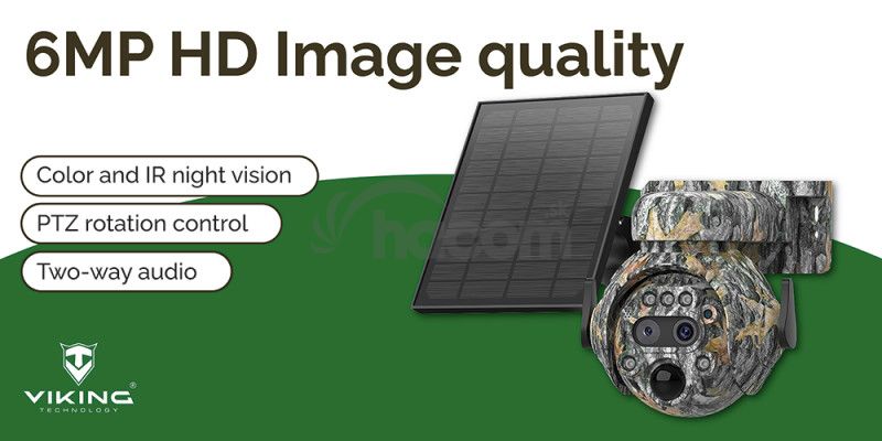 Solárna kamera Viking HDs04 4G ponúka vysoké rozlíšenie 2304 x 1296, 12x manuálny zoom a nočné videnie s dosahom až 70 metrov. Vďaka solárnemu panelu je úplne nezávislá na elektrickej sieti.