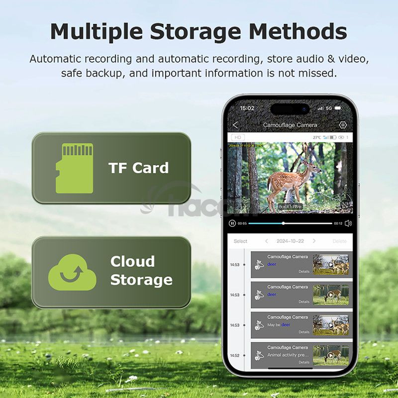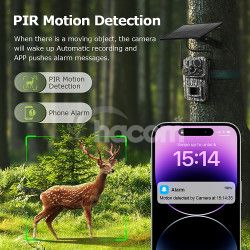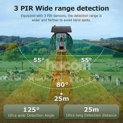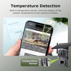 Kamera je vybavená PIR senzorom, ktorý spoľahlivo detekuje pohyb až na vzdialenosť 12 metrov. Navyše disponuje funkciou detekcie teploty a rozpoznávania zvierat s AI.