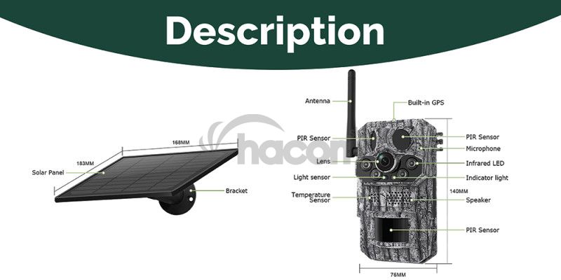 •Rozmery: Kamera 14 x 10 x 8 cm, Solárny panel 18,3 x 16,3 cm