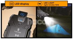 Ďalšou výhodou tejto outdoorovej powerbanky je prehľadný LED displej, ktorý vám zobrazí stav kapacity batérie a priebeh nabíjania. Stav kapacity sa zobrazuje v percentách, tým získate presnejšie dáta a nemusíte sa spoliehať len na svietiace diódy. Tiež môžete využiť praktické LED svietidlo a jeho 3 svetelné módy . Posvieťte si na cestu, použite výstražný stroboskop alebo si privolajte pomoc vďaka SOS svieteniu.