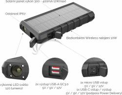 - Solárne PowerBank VIKING W24W 24000mAh, QC3.0, bezdrôtové nabíjanie VSPW24W