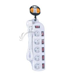 - Solight predlžovací prívod, 5 zásuviek, 6x vypínač, 2m biela PP143