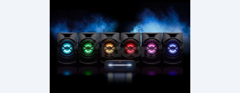 Výkonný 2 pásový domáce hudobný systém z radu High Power Audio - SHAKE X30. CD / DVD, Bluetooth (LDAC), NFC, 2x analógový vstup na mikrofón alebo gitaru, 1x analógový výstup, vstup pre mikrofón, HDMI výstup. Svietiace LED, DJ efekty, Karaoke, vylepšenia zvuku DSEE, Clear Audio +, možnosť ovládania pomocou aplikácie Songpal / Fiestable. Hlavná jednotka. rôznofarebne podsvietenieParametre