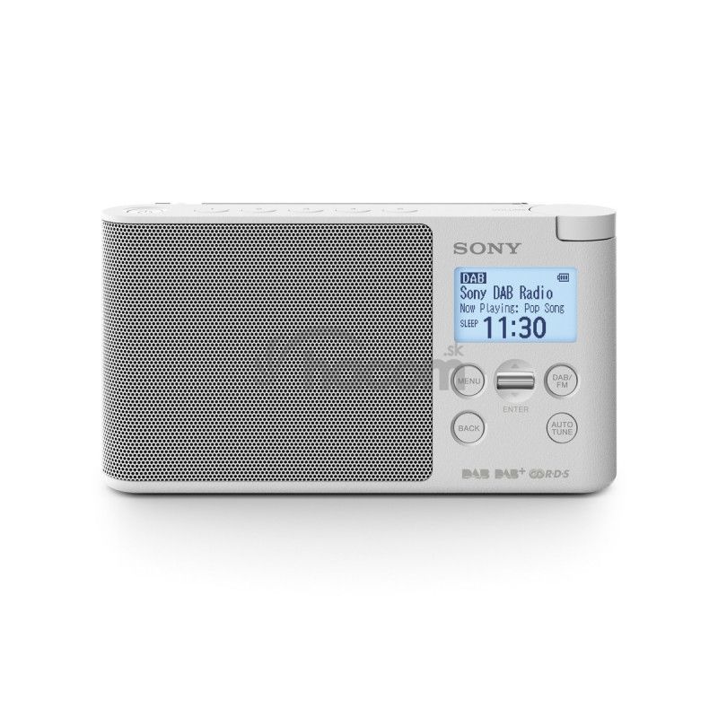 Ľahké a prenosné DAB / DAB + / FM rádio. Farba biela. FM pásmo 87,5-108,0, DAB / DAB + Zóna 3 (174,928-239,200 MHz). Veľký, dobre čitateľný pozitívny LCD display bielo podsvietený. Časovač budenia a vypnutia. 5 tlačidiel priamej voľby staníc (5 pamätí pre DAB + 5 pre FM). Možnosť napájania z el. siete (100-240 V, 50/60 Hz) alebo priamo 4x AA (LR6) akumulátorom (výdrž batérie 25 hodín (DAB), 27,5 (FM). Vysúvacia teleskopická anténa pre lepší príjem DAB / DAB + signálu. Monofoní reproduktor s výstupným výkonom 650 mW. Priemer reproduktora 77 mm. Výstup pre slúchadlá. Možnosť zobrazenie času na display prístroje (12/24 h režim). Možnosť nastavenia časovača vypnutia aj vzbudenie.