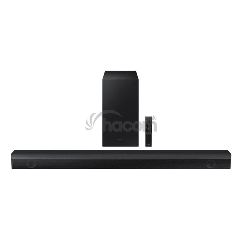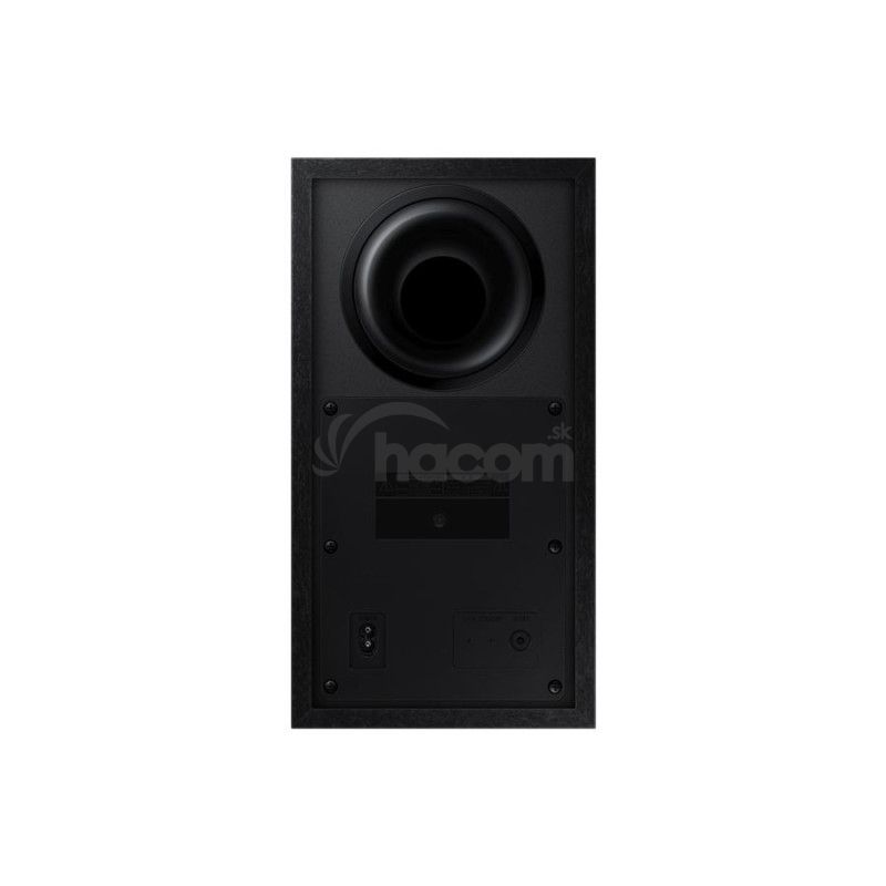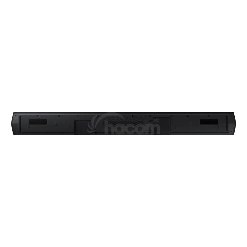 Samsung soundbar, 430 W, počet kanálov 3.1, 7 reproduktorov, 6,5" Aktívny Bezdrôtový subwoofer, Stredový reproduktor, Dolby Digital 5.1ch, DTS 5.1ch, HDR, Bluetooth 4.2, Bluetooth multi connection, 1x HDMI vstup, 1x HDMI výstup, HDMI ARC, HDMI CEC, USB 2.0 vstup, optický audio vstup, podporované formáty: AAC, MP3, WAV, WMA, OGG, FLAC, AIFF, ovládanie TV a SB jedným ovládačom, Sound Modes: SSE, Standard, Adaptive lite, Game, Bass Boost, DTS Virtual:X, Voice enhance mode, Night mode, držiak na stenu v balení, čierna farba