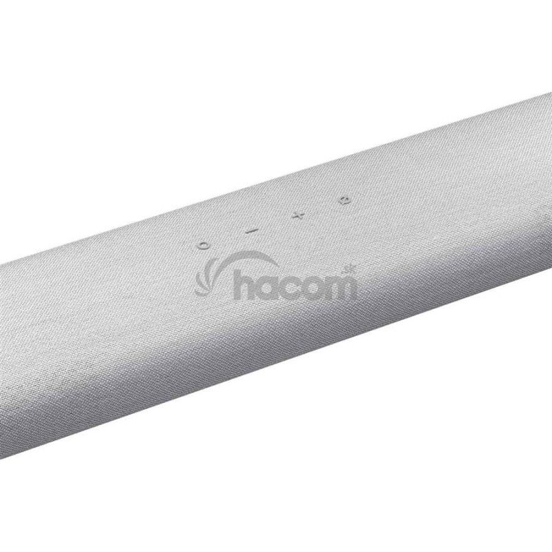 Samsung Lifestylový soundbar, 200 W, 5.0CH zvuk, Acoustic Beam Technology, Wide Range Tweeter, Stredový reproduktor, Side firing reproduktory, Wi-FI, Bluetooth 4.2, Bluetooth Power On, Optický audio vstup, 1x HDMI výstup, eARC, HDMI CEC, Dolby 5.1, DTS 5.1, podporované formáty: AAC, MP3, WAV, WMA, OGG, FLAC, ALAC, AIFF, Smart Things app. podpora, Tap sound, Sound módy: Adaptive, Standard, Music, ovládanie TV a SB jedným ovládačom, Vstavaný hlasový asistent (Alexa), držiak na stenu v balení, strieborné prevedenie