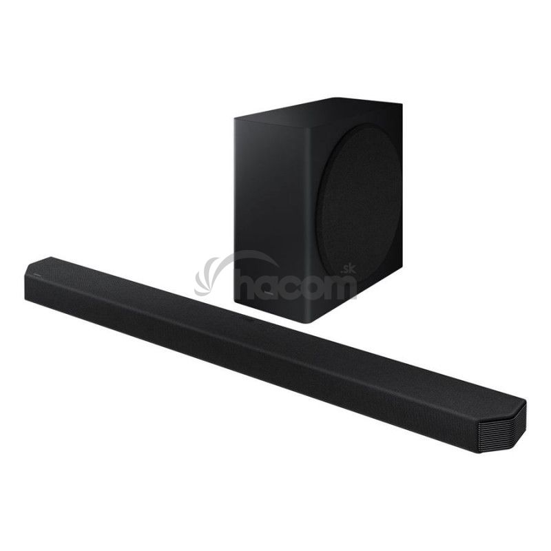 Samsung luxusný soundbar s Dolby Atmos, 406 W, počet kanálov 7.1.2, 16 reproduktorov, 8 "Aktívny Bezdrôtový subwoofer, Wide Range Tweeter, Stredový reproduktor, výškový reproduktor so širokým vyžarovaním, Up -firing reproduktory - vyžarujúci zvuk hore,, Side- firing reproduktory - vystreľujúce zvuk do strán, Front-Wide reproduktory, SpaceFit Sound +, Auto EQ, AVA - Active Voice Amplifier (zvyšovanie hlasitosti dialógov v rušnom prostredí), Samsung Symphony, Dolby Atmos / Dolby True HD / Dolby DD +, DTS: X, 4K Video Pass, HDR, HDR 10+, Wi-FI, Bluetooth 4.2, 2x HDMI vstup, 1x HDMI výstup, eARC, HDMI CEC, optický audio vstup, podporované formáty: AAC, MP3, WAV, WMA, OGG, FLAC, ALAC , AIFF, ovládanie TV a SB jedným ovládačom, Sound Modes: SSE, Standard, Adaptive, Game Pro, Smart Things app. podpora, Tap Sound, Vstavaný hlasový asistent (Alexa), držiak na stenu v baleni, čierna farba