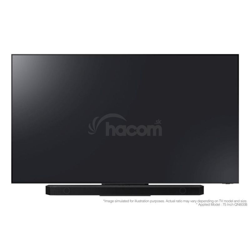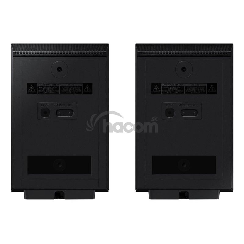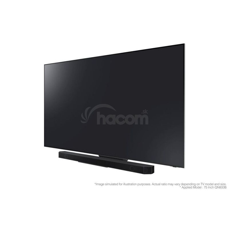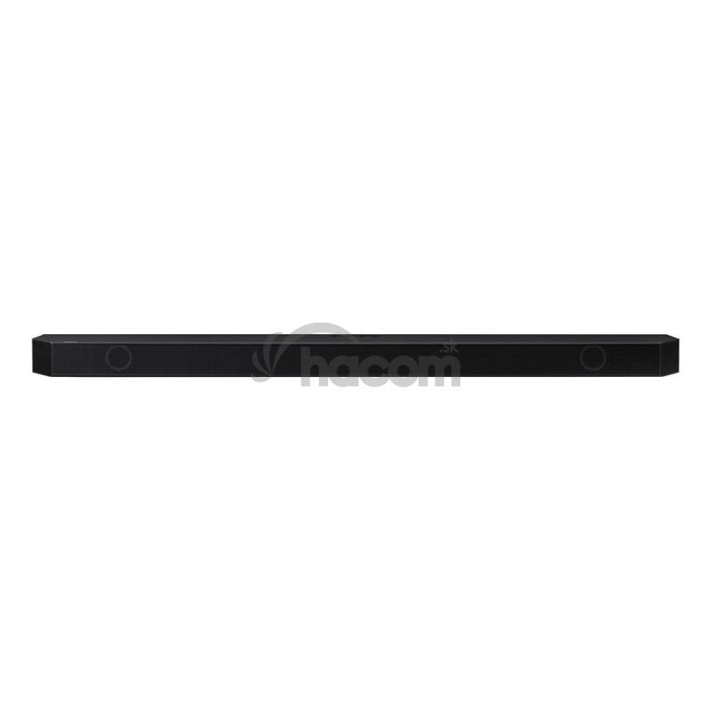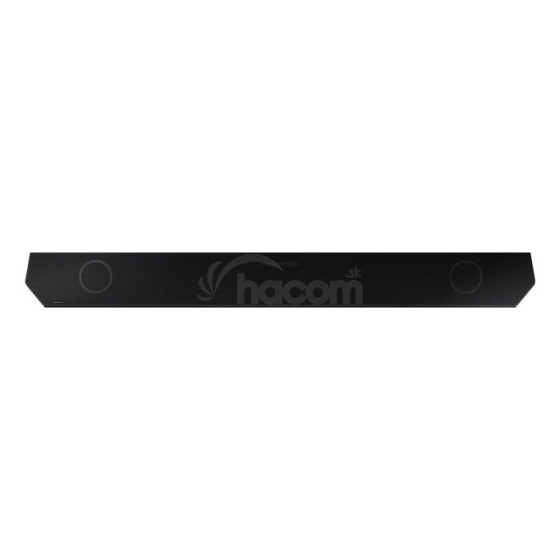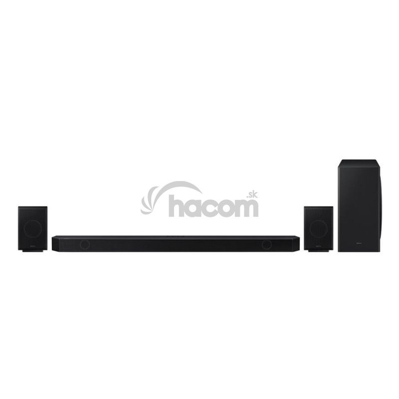 Samsung luxusný soundbar s Dolby Atmos, 540 W, počet kanálov 9.1.4, 17 reproduktorov, 8" Aktívny Bezdrôtový subwoofer, Wide Range Tweeter, Stredový reproduktor, Up -firing reproduktory - vyžarujúce zvuk hore, Side-firing reproduktory - vyžarujúce zvuk do strán, Front Wide-firing reproduktory, Samostatné bezdrôtové zadné reproduktory - súčasť balenia, Bezdrôtový Dolby ATMOS, SpaceFit Sound, Active Voice Amplifier (zvyšovanie hlasitosti dialógov v rušnom prostredí), Q Symphony, Dolby Atmos / Dolby MAT / Dolby Digital Plus / Dolby True HD, DTS-HD HRA, DTS-HD MA, DTS Express, DTS 5.1ch, DTS:X, 4K Video Pass, HDR, HDR 10+, Wi-Fi, Tap sound, Bluetooth 4.2, 1x HDMI vstup, 1x HDMI výstup, eARC, HDMI CEC, optický audio vstup, podporované formáty: AAC, MP3, WAV, WMA, OGG, FLAC, ALAC, AIFF, ovládanie TV a SB jedným ovládačom, Sound Módy: SSE, Standard, Adaptive, Game Pro, Voice enhance mode, Night mode, Smart Things app. podpora, Airplay, Podpora hlasového asistenta (Alexa), držiak na stenu v balení, čierne prevedenie