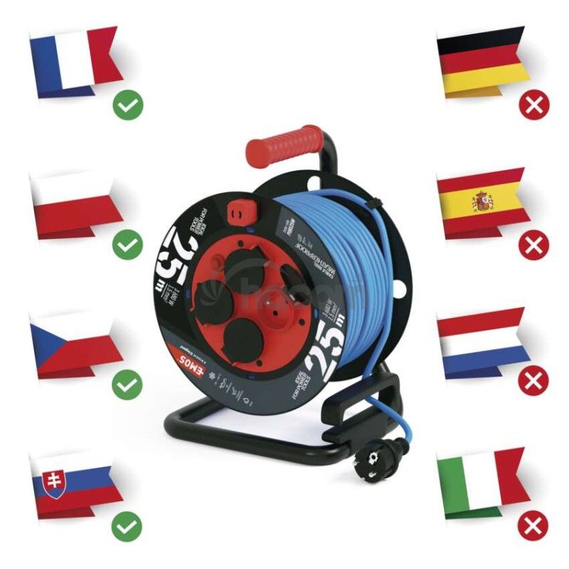 - Špeciálny predlžovací kábel na bubne 25 m / 4 zásuvky / PVC/ 230 V / 1,5 mm2 P08525W