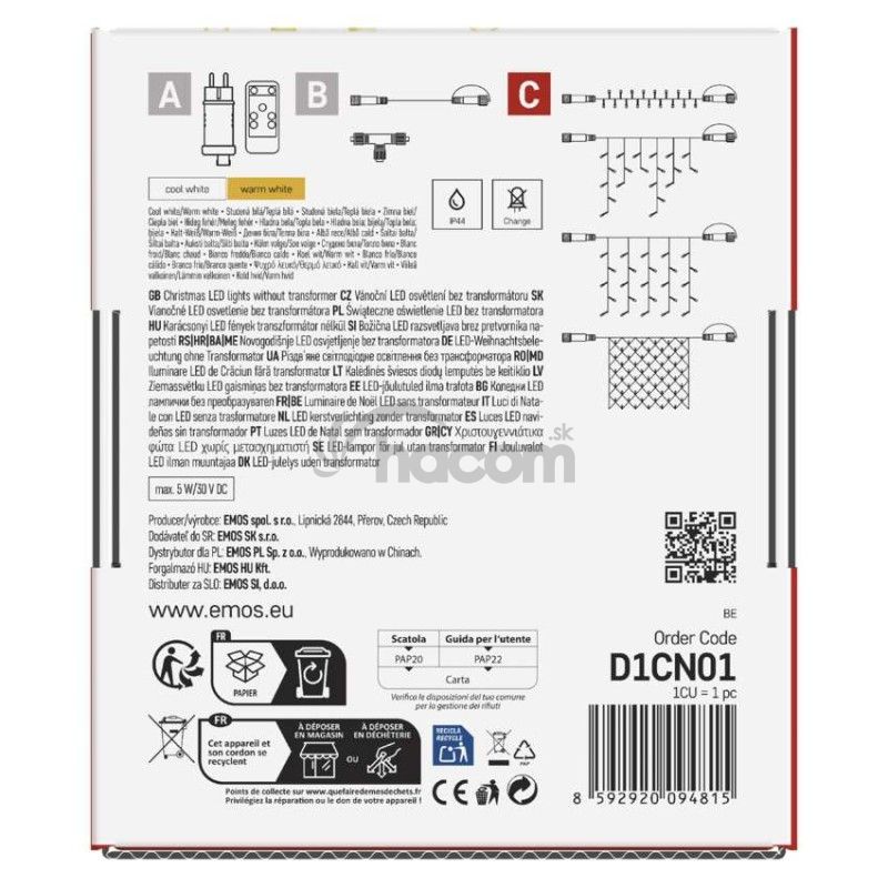 - Standard LED spoj. reťaz blikajúca – cencúle, 2,5 m, vonkajšia, teplá/studená biela D1CN01