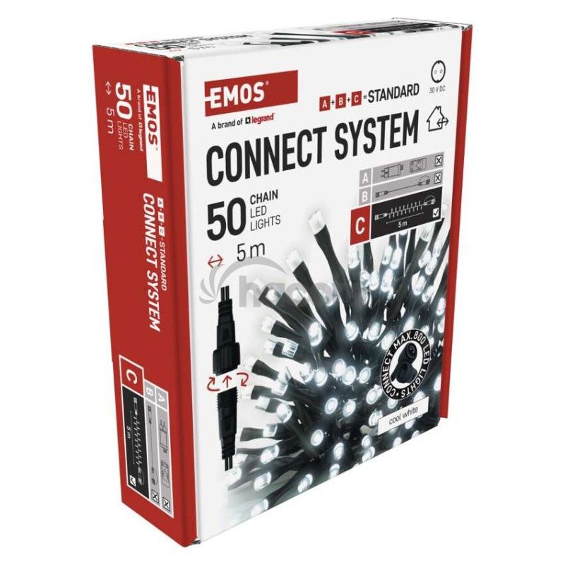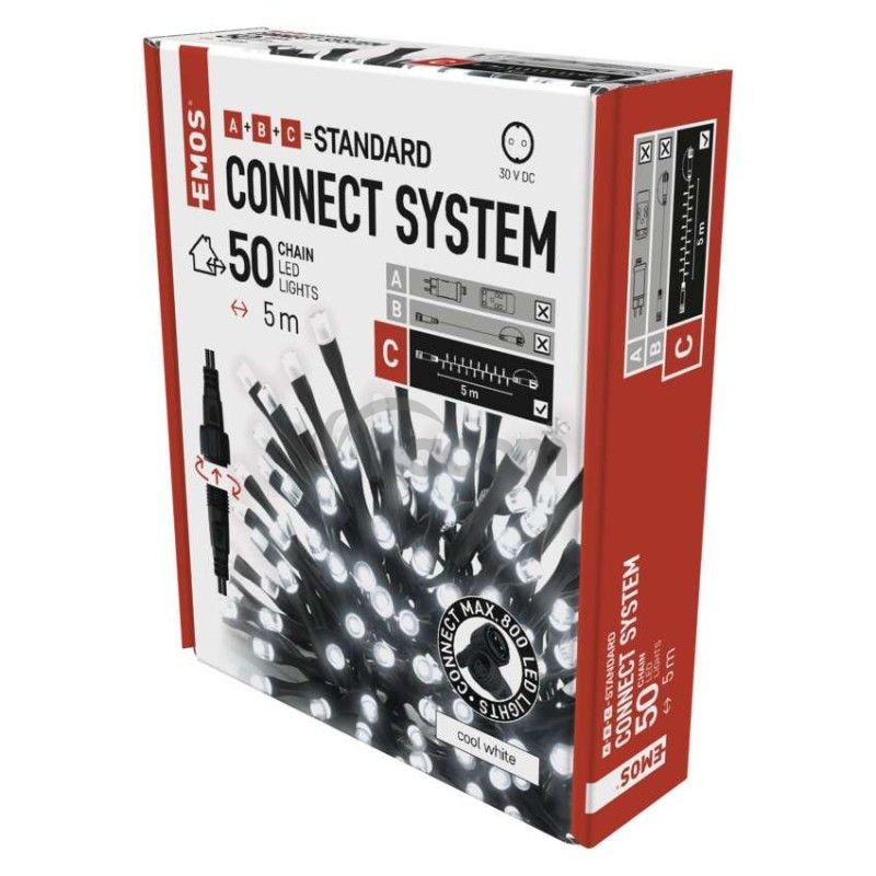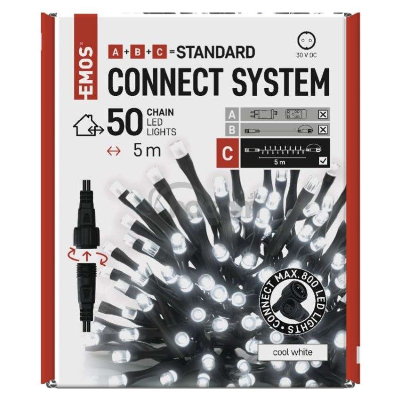 - Standard LED spojovacia vianoč. reťaz, 5 m, vonkajšia aj vnútorná, studená biela D1AC02
