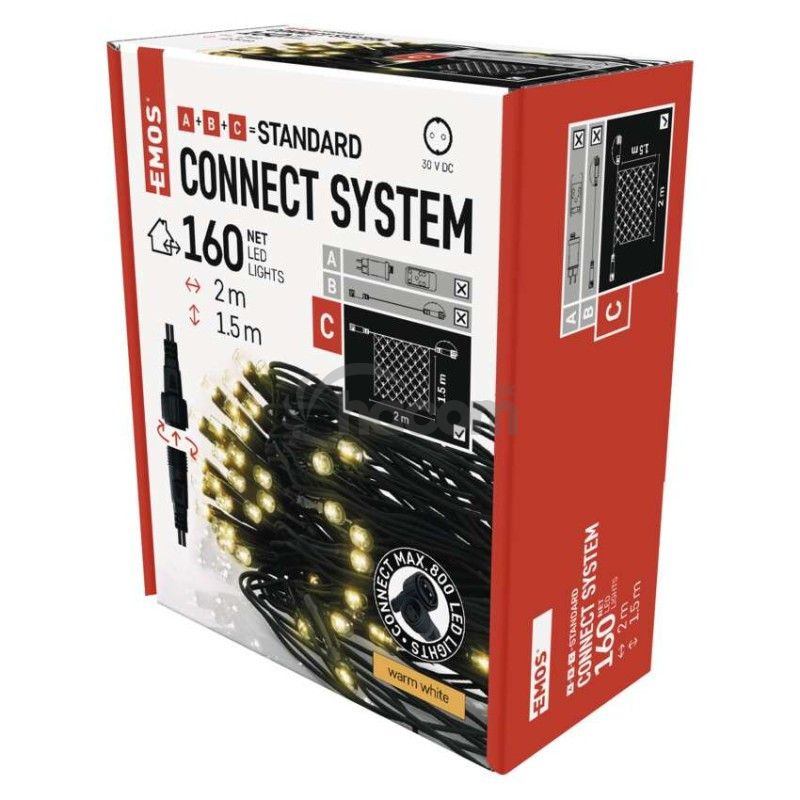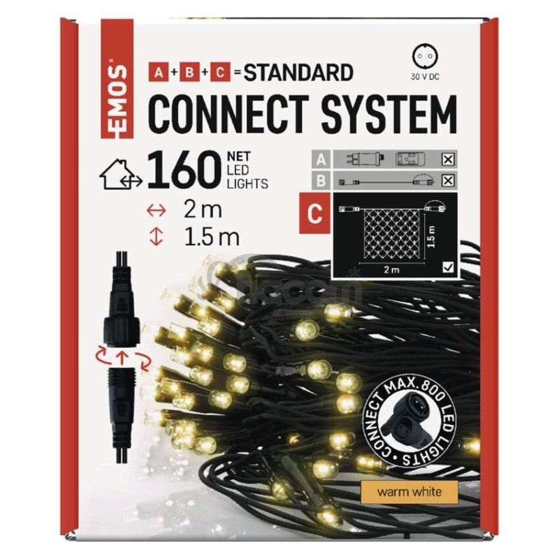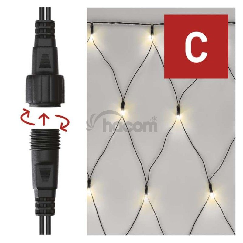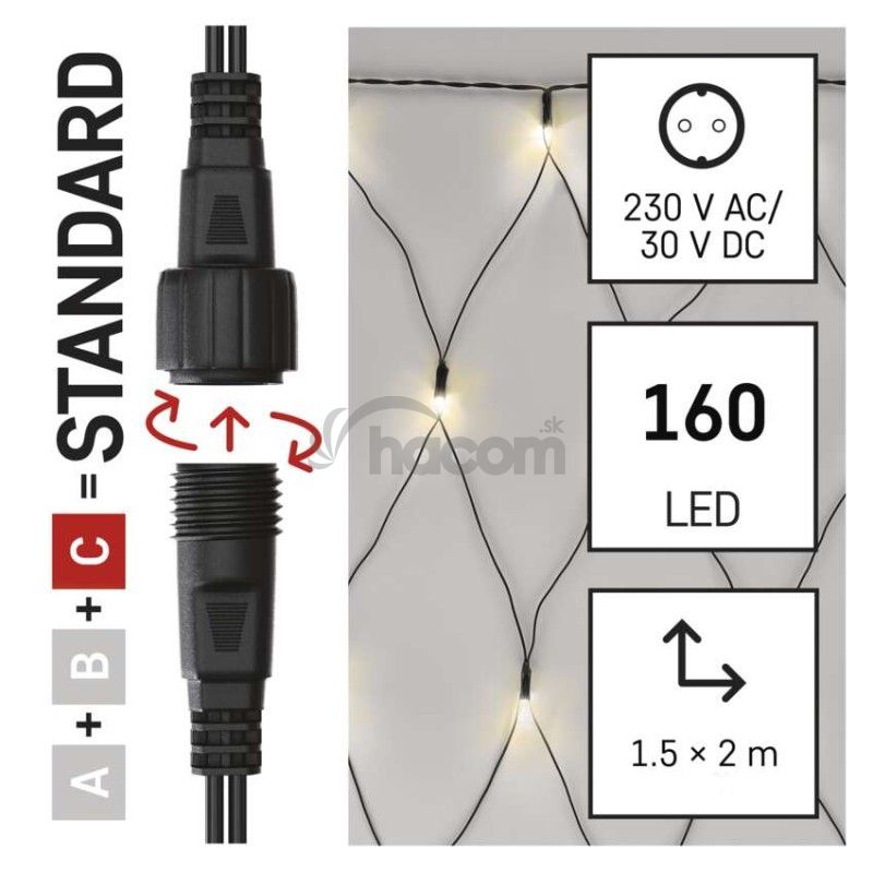 - Standard LED spojovacia vianočná reťaz – sieť, 1,5x2 m, vonkajšia, teplá biela D1DW01