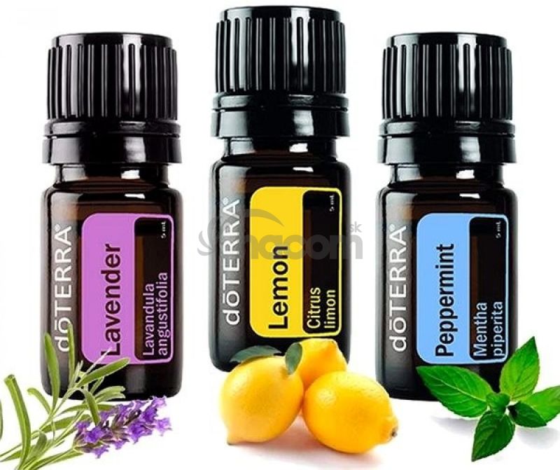 - Štartovacia súprava olejov doTERRA, 1x mäta pieporná 5 ml, 1x levanduľa 5 ml, 1x citrón 5 ml Starter Trio Kit