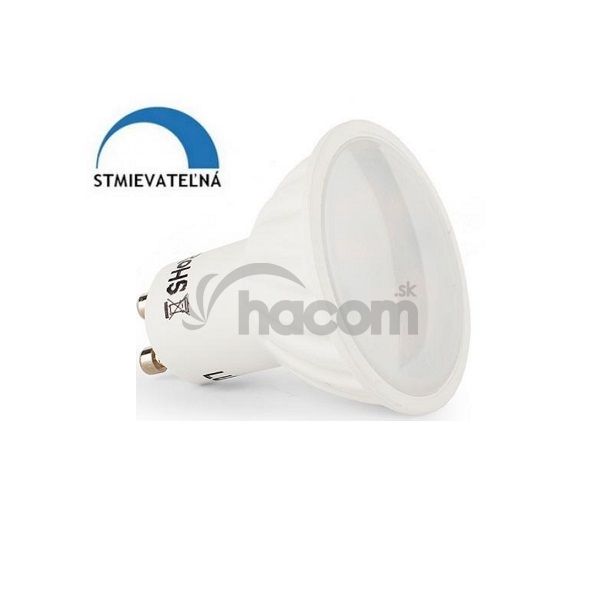 - Stmievateľná LED žiarovka 7W GU10 teplá biela