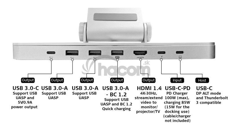 - 3x slot na USB 3.0-A, 1x HDMI, 1x USB 3.0-C,