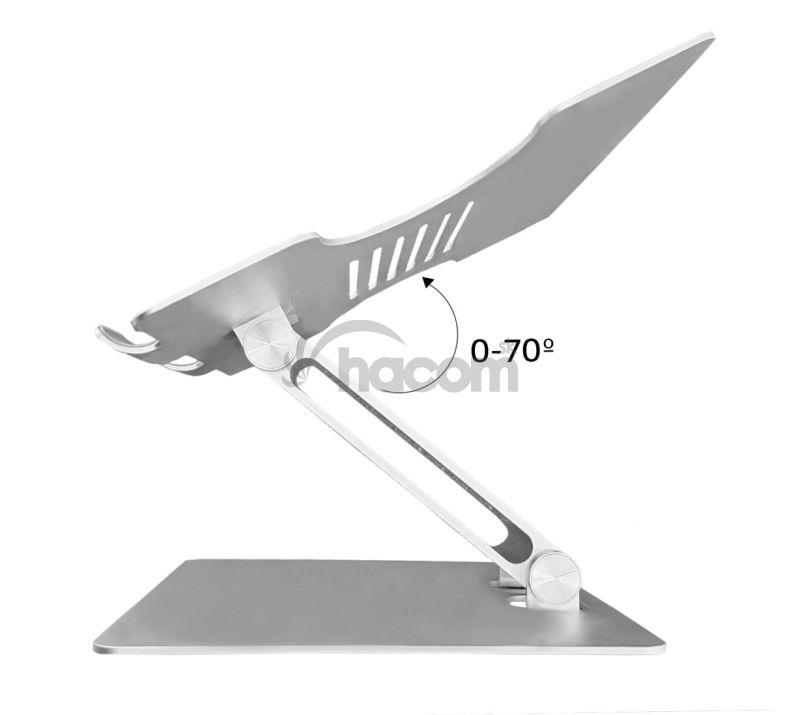 - Nastaviteľný v ľubovoľnom uhle až do 70 ° a možnosťou mať notebook v rovine alebo vyvýšený až o 283 mm
