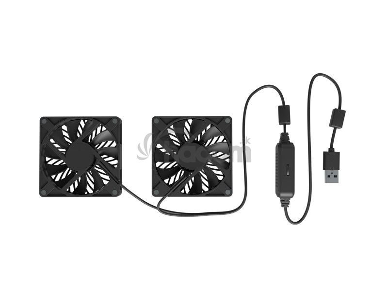 - Dva magneticky pripevnené ventilátory je možné umiestniť tam, kde vaše zariadenie nasáva vzduch, aby bol zabezpečený konštantný preud chladného vzduchu a optimálne prúdenie vzduchu cez skriňu.