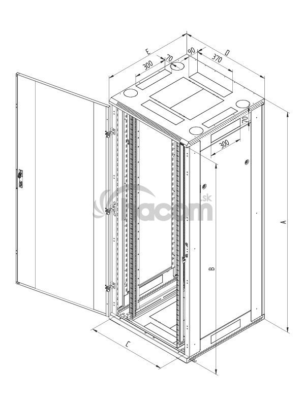 * Rozšírené stojky skeletu sú určené pre dodatočnú montáž 19 "rozvodných panelov, ktoré tak nezaberajú priestor v rozvádzači. Vďaka premyslenému uchytenie nebráni výsuvným serverom ani u verzie rozvádzača 600 mm široké. Navyše verzia "A5" (na konci kódu rozvádzača) má vo stojkách vylamovacie záslepky pre možné pretiahnutie káblov medzi susediacimi rozvádzači.