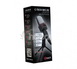 C-TECH MIC-02 je vysoko kvalitný mikrofón s prirodzenou kvalitou reprodukcie hlasu pre každodenné použitie. Svoje uplatnenie nájde ako pri použití s komunikačnými programami, tak i pri vytváraní youtube videí alebo live prenosov. Mikrofón sa pripája pomocou 2,5 m kábla s pozláteným stereo konektorom jack 3,5 mm, v balení však nájdete aj redukciu jack stereo 3-pin / 4-pin pre pripojenie mikrofónu k zariadeniu, ktoré je vybavené zlúčeným audio konektorom pre mikrofón a slúchadlá. Mikrofón je vybavený zapínacím tlačidlom s reguláciou hlastitosti. V balení nájdete praktický podstavec (tripod), vďaka ktorému je možné umiestniť mikrofón do rôznych polôh.Špecifikácia:
