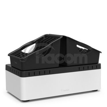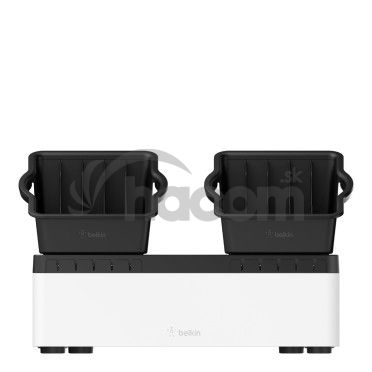 Belkin STORE AND CHARGE GO WITH BINS AND 10 port USB POWER. Dva odnímateľné a ľahko prenosné zásobníky s 5 oddielmi. Kompatibilný s rôznymi typmi zariadení a značiek. Nabíja súčasne 10 zariadení kompatibilných s rozhraním USB. Základný modul sa pripevňuje k stene alebo stolu. Nadprúdová ochrana. Dokonalé riešenie pre učebne. Jednoduché prenášanie.Multi-dokovacia stanica s prenosnými zásobníkmi v kombinácii s dokovacou stanicou RockStar. To je Belkin STORE AND CHARGE GO. Táto stanica je ideálnym riešením pre pohodlné uloženie a nabíjanie viac zariadení. Základný modul môže byť bezpečne a úsporne uložený na stole alebo pripevnený na stene a bezpečne pojme až 10 zariadení. Odnímateľné kontajnery s piatimi oddielmi uľahčujú prepravu.